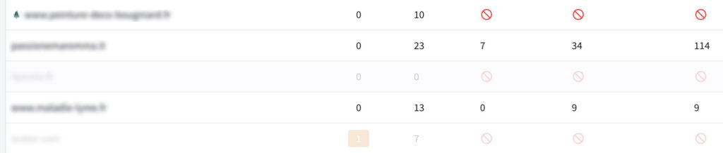 Ainsi, lors de la vérification quotidienne, si l’un de vos sites n’est pas accessible ou renvoie une erreur, celui-ci sera grisé.