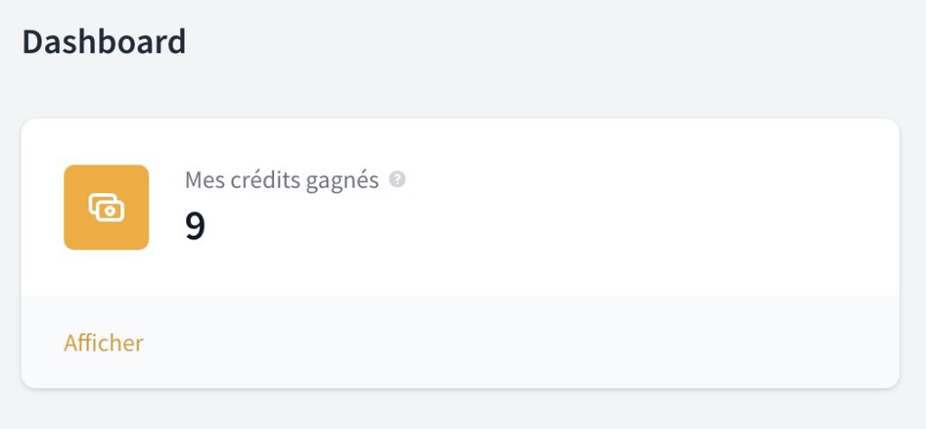 Cet encart affiche le nombre de crédit que vous avez actuellement de disponibles sur votre compte.