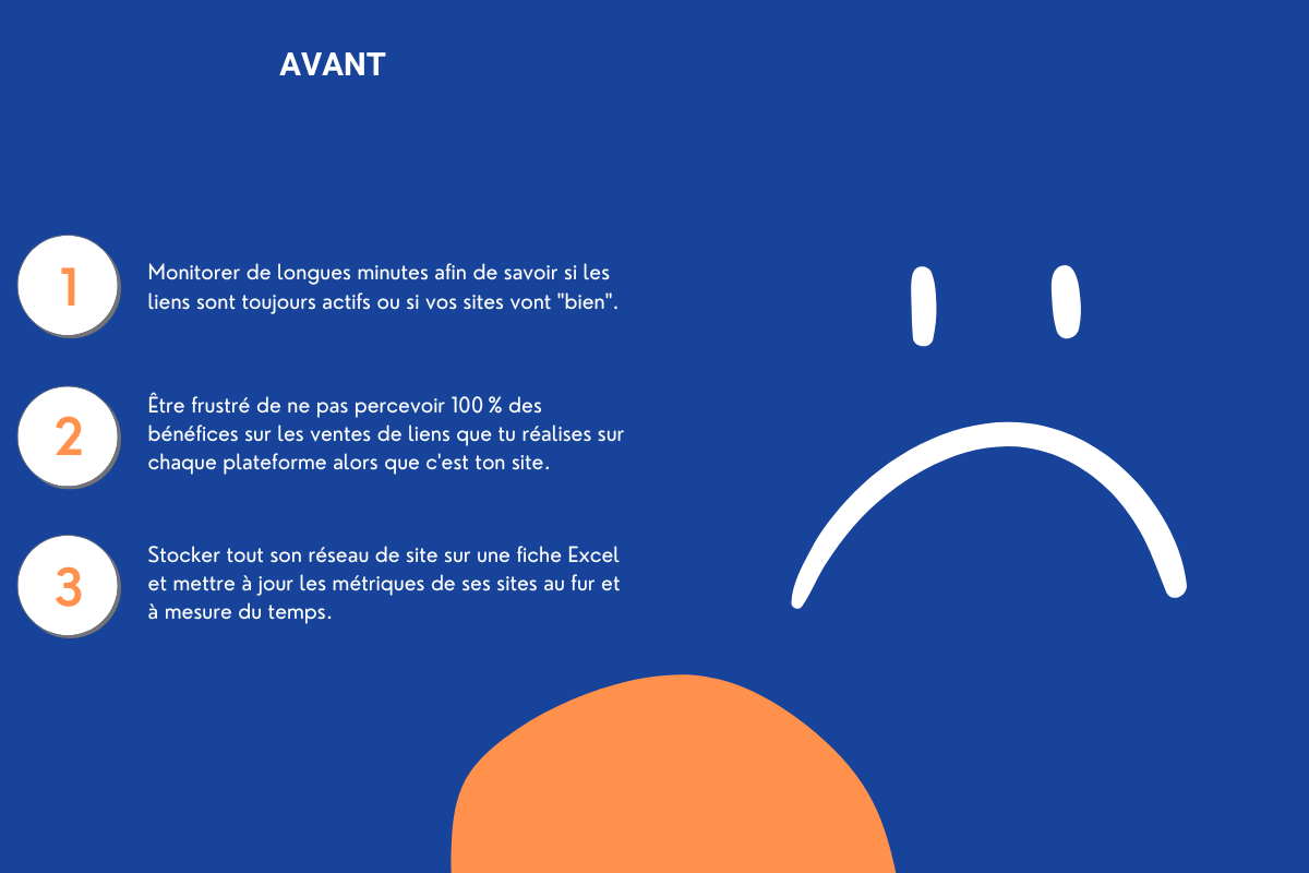 Découvre l’avant/après MyLinksManager basé sur de nombreux retours d’éditeurs de site. Tu pourras avoir un aperçu des avantages que propose la plateforme.